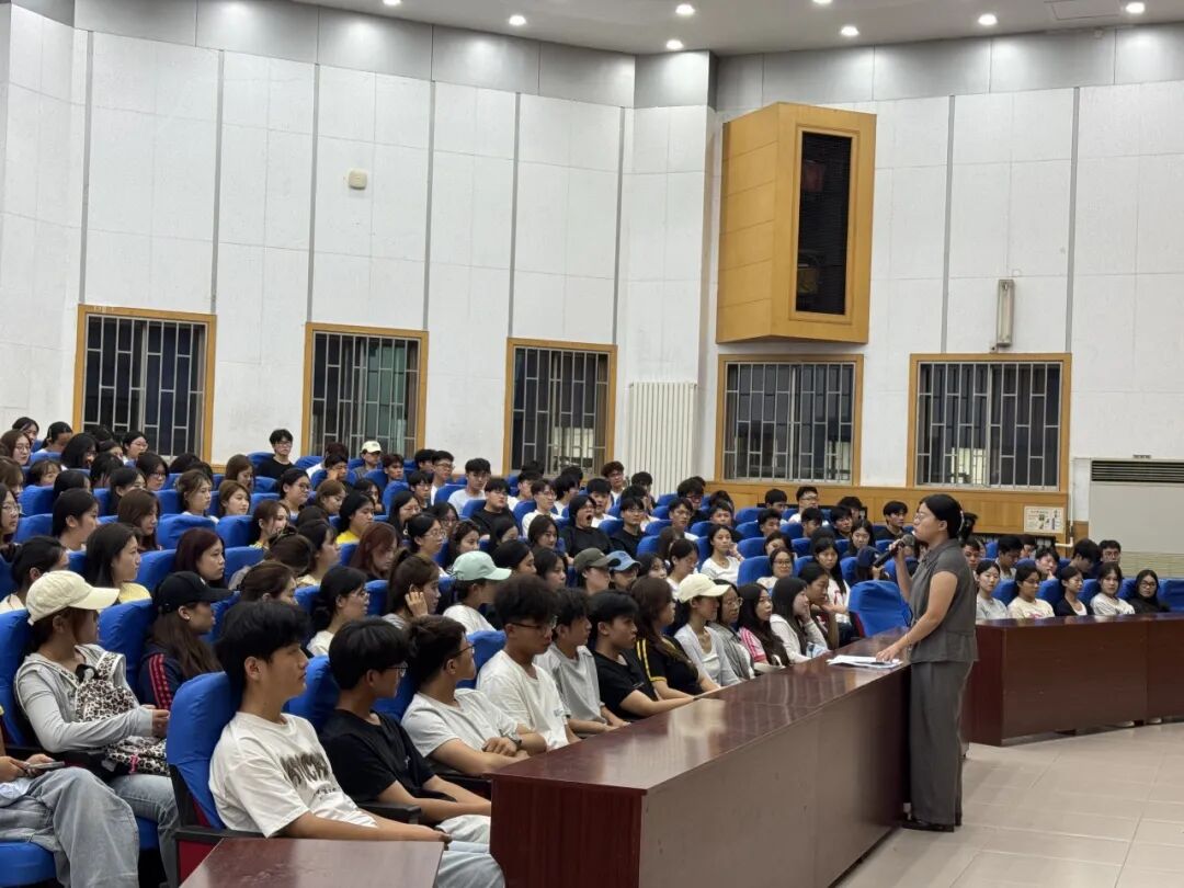 王晓颖从校史、纪律、学习这三个方面入手,展开详细讲解。首先,她围绕学院的人才培养、育人方针、师资队伍等方面进行深入阐述,让同学们感受到强烈的归属感。其次,紧扣“纪律”这一核心要素,为同学们构建起校园生活的“行为指南”,并鼓励大家共同营造风清气正的校园环境。最后,她强调“大学不是终点,而是‘艺术人生’的起点”。谈及学习规划,王晓颖结合音乐与舞蹈专业的特殊性,为新生绘制了“成长路线图”,她鼓励新生主动与专业老师沟通交流、请教问题,通过交流与实践不断提升学习能力,为未来发展储备多元化的能力。