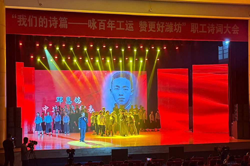 此次大会是为庆祝中华全国总工会成立100周年,由潍坊市总工会联合市直有关部门共同举办。我校音乐与舞蹈学院师生带着自编自导自演的音乐剧《卅一年华之歌》,参与了此次大会的演出。潍坊市总工会对创作编排此剧和参与此次演出的刘晓玲、黄永健、王霞、解涛、黄晓薇等58名师生给予了表扬。