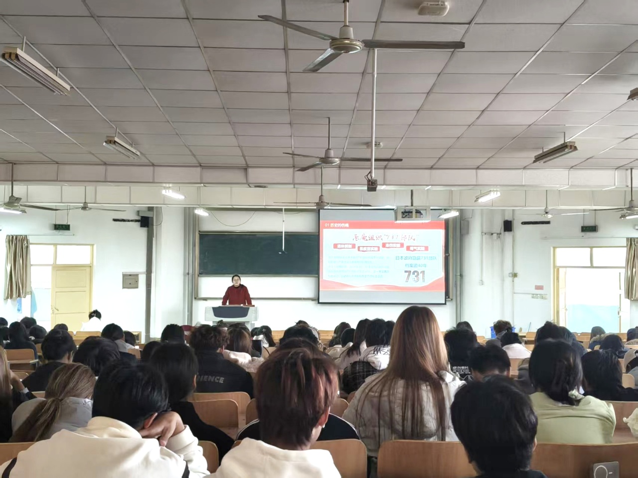 付璐老师以历史为起点,带领同学们从历史的伤痕到历史的警示,再到精神的传承、吾辈的担当。引导学生深入思考“大学生为何需要理想信念教育”,通过“榜样的力量”为同学们强心铸魂,带领同学们观看影视片段以及731的真实案例,激励同学们在关键时刻勇于担当、在危难关头敢于奉献。