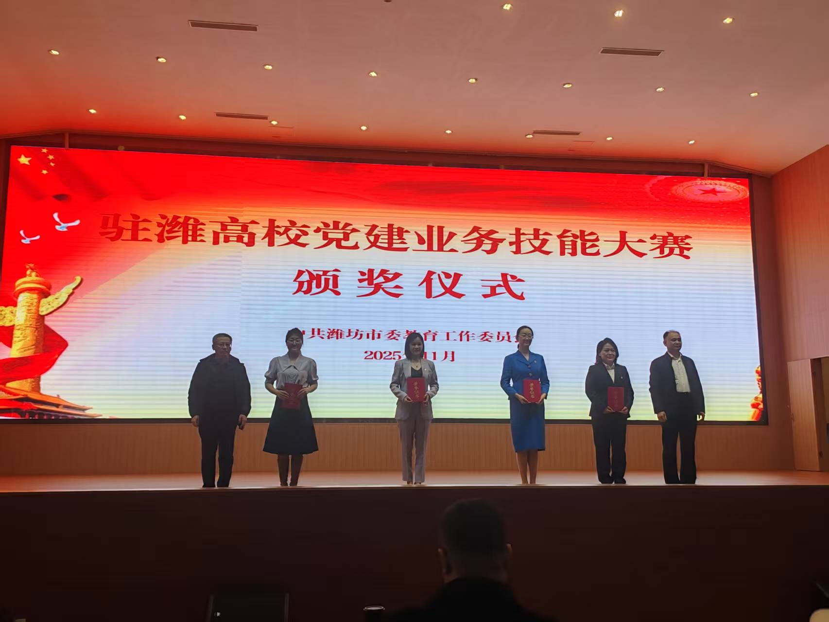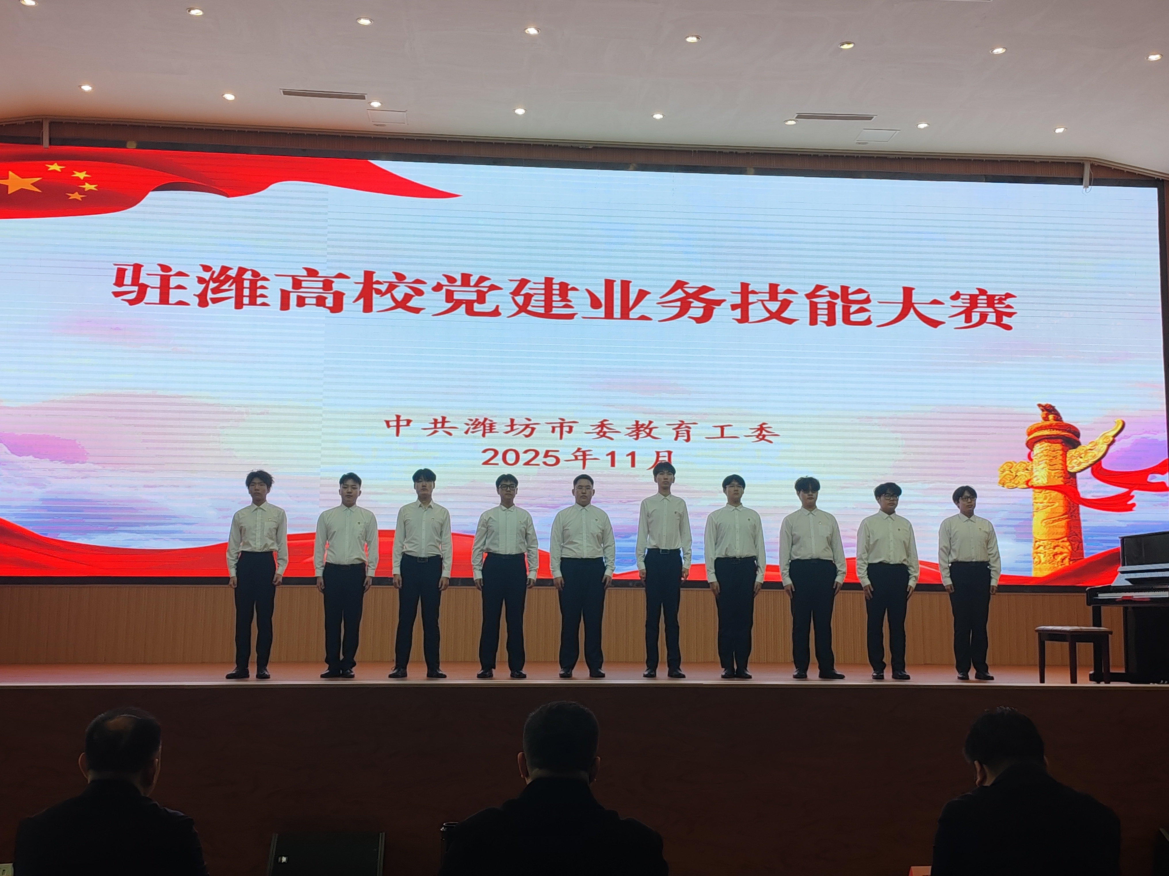 11月9日,由中共潍坊市教育工委主办的驻潍高校党建业务技能大赛在山东科技职业学院南院举行。由杜爽老师指导、孙丕午等学生参与的音乐党课《琴弦上的抗战记忆》荣获二等奖。