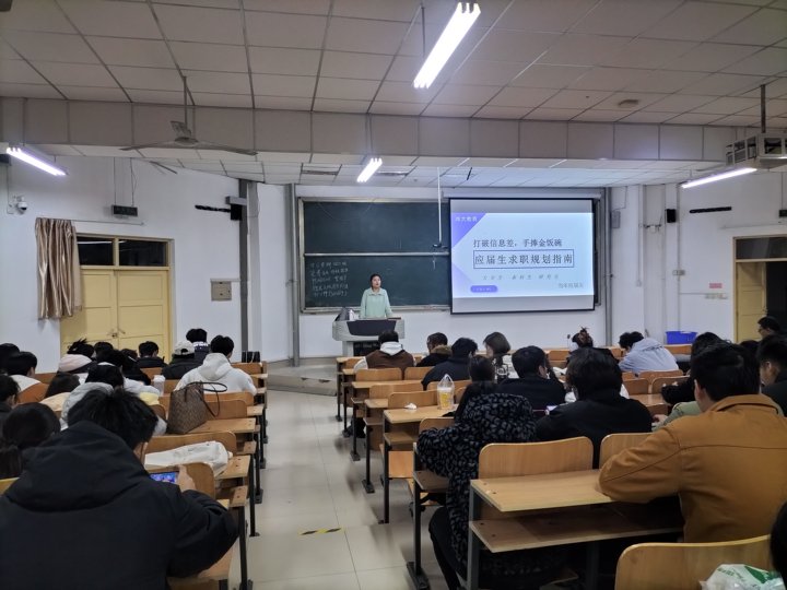 讲座特邀资深人力资源管理专家、具有多年校园招聘与职业咨询经验的高浩雪担任主讲嘉宾。她根据学生的实际需求,围绕“大学生毕业求职现状”“升学与就业路径科学规划”“黄金求职期高效利用策略”“体制内求职‘捷径’解析”四大板块展开深度剖析。整场讲座逻辑严密、案例生动,既有理论高度,又极具实践指导价值,现场互动积极,学习氛围浓厚。毕业生纷纷表示,本次讲座有效解答了他们在职业起步阶段面临的诸多困惑与疑虑,不仅增强了对求职过程的理性认识,更对自身未来的发展方向有了更为明确的定位和更强的行动信心。