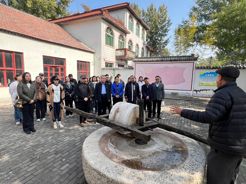 随后,一行人来到益都赤涧支前粮站纪念馆,通过讲解员生动细致的解说,了解当地群众在解放战争期间全力支援前线的感人事迹。馆内陈列的各种农具、运输工具以及模拟的支前场景,生动再现了当年军民团结一心、共同奋斗的历史画面。这些珍贵的史料和实物,让党员们深刻体会到人民群众在革命胜利中所发挥的巨大作用,也更加明确了自身肩负的责任与使命。
