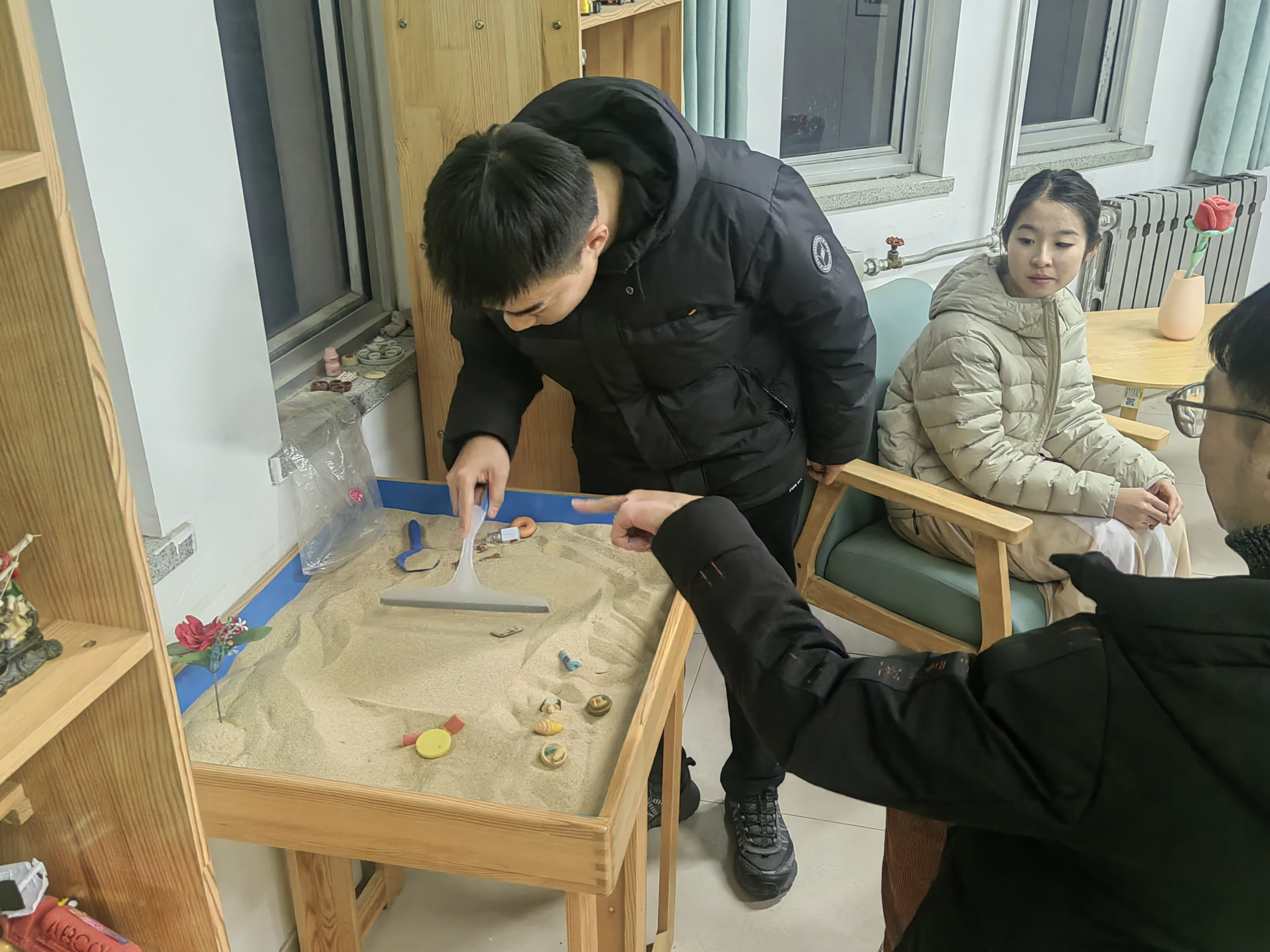 活动现场,“哆唻咪”心浴坊温馨静谧的氛围,让同学们快速卸下疲惫、放松身心。在指导老师的耐心引导下,大家有序挑选心仪的沙具,随心摆放于沙盘之中,以沙为媒、以具为语,用错落的场景搭建内心思绪,将潜藏的情绪与想法具象化呈现。过程中,学子们在自主创作中梳理心境,在无声互动中彼此共情,慢慢释放日常学习生活中的压力,也在探索沙盘场景的过程中,更清晰地感知自我、舒缓心绪,充分感受沙盘疗愈带来的温暖力量。