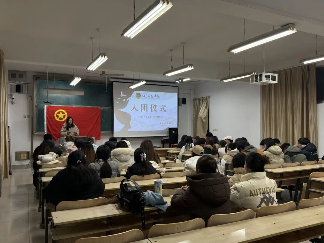 12月14日,2025年下半年新团员入团仪式在闻韶楼t209举行,学院党委副书记刘江虹、团委负责人王晓颖以及43名新团员参加,入团仪式由杨硕同学主持。