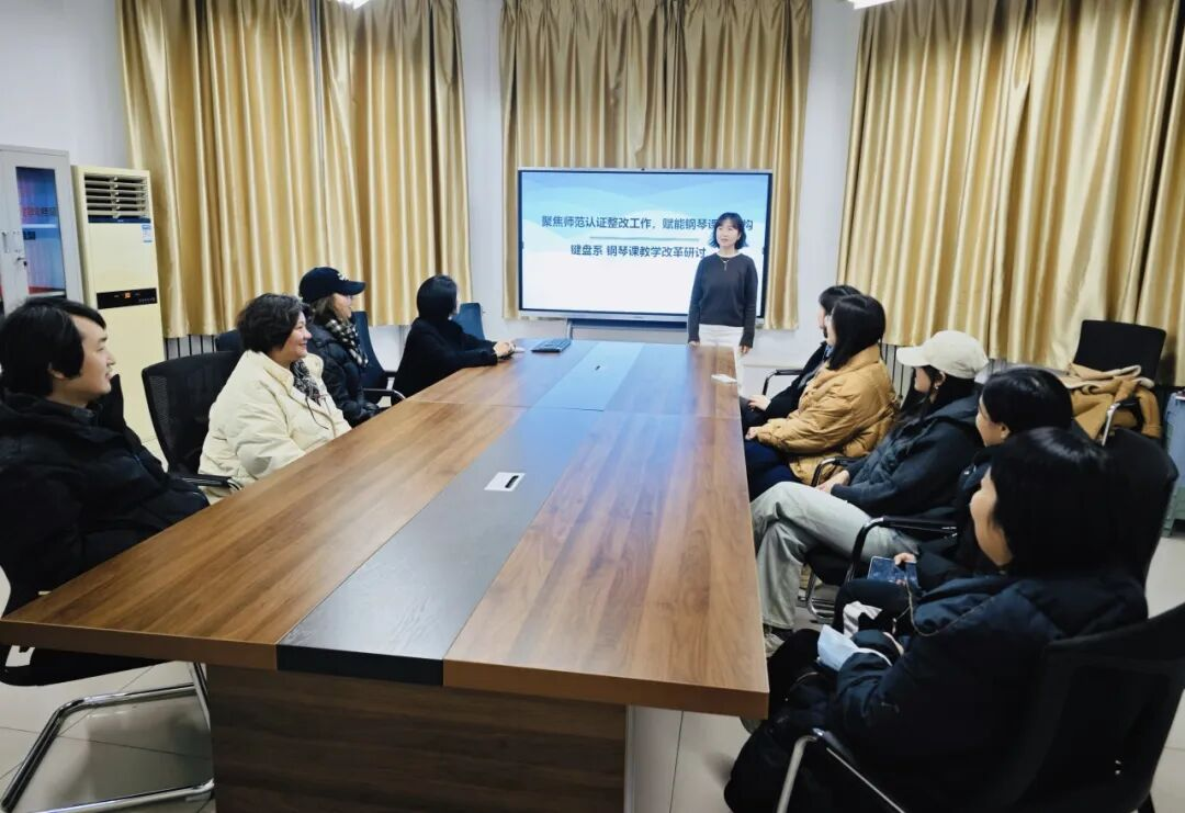 为扎实推进师范类专业认证整改工作,落实 "以评促改、以评促建" 要求,12月24日,音乐与舞蹈学院键盘系召开 "聚焦师范认证整改工作,赋能钢琴课程重构" 主题研讨会。键盘系全体教师、教学督导参会,以问题为导向破解教学痛点,为音乐学(师范)专业钢琴课改革凝聚共识。