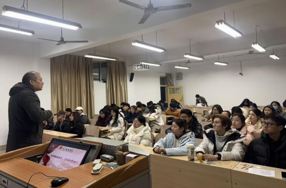 活动中,刘江虹通过生动的案例和深入浅出的讲解让同学们深刻理解爱党爱国的内涵和意义,他围绕团员青年成长发展的关键路径,从理想信念、学习态度、品德修养、责任担当四个方面激励大家奋发图强,并号召同学们努力学习专业知识,提升自身综合素质,以实际行动践行爱国之志,在青春的赛道上奋力奔跑,不负时代赋予的使命,不负青春韶华,真正将青春抱负落实到报国行动之中。