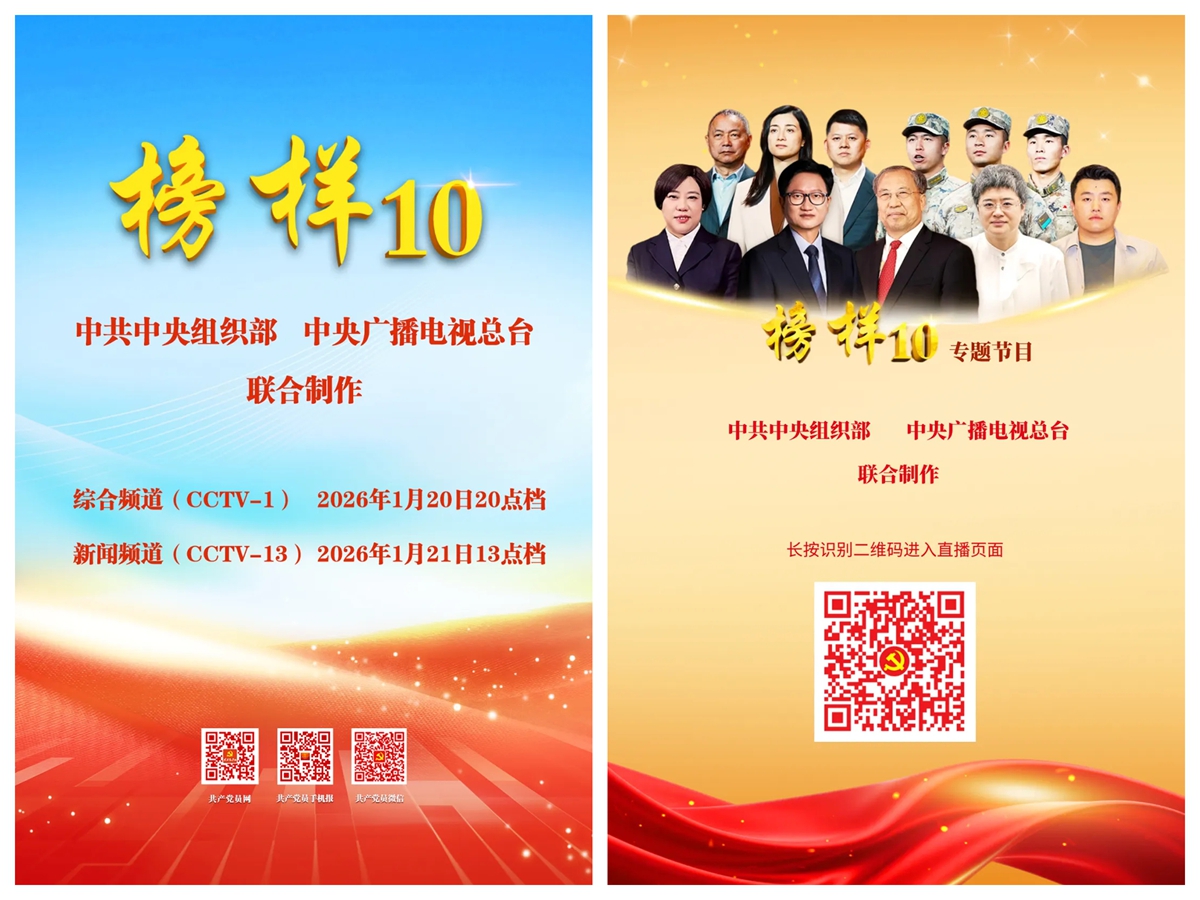 该节目将于2026年1月20日在中央电视台综合频道(CCTV-1)晚间8点档首播,1月21日在中央电视台新闻频道(CCTV-13)13点档重播,在共产党员网(www.12371.cn)、共产党员手机报(12371.people.com.cn)、共产党员微信(gcdyweixin)、全国党员干部现代远程教育专用频道集中展播。共产党员网首页提供节目下载。请学习收看。