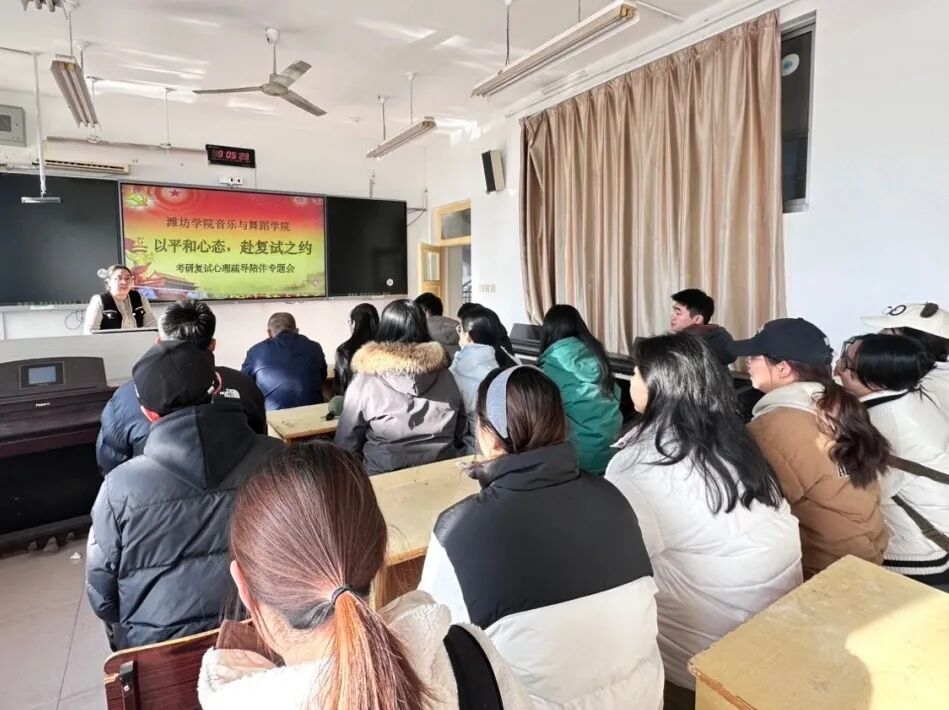 专题会上,老师们结合音乐与舞蹈专业复试的考核特点、应试要求与心理规律,围绕同学们在备考阶段普遍存在的紧张情绪、焦虑心理、自我怀疑、状态波动等问题,进行了细致入微的分析与针对性疏导。老师们从情绪调节方法、考前心态管理、临场应变技巧、专业展示自信提升等多个维度,分享了科学实用、贴合专业的应考经验,引导同学们正视压力、接纳情绪、调整认知,学会用积极的心理暗示与合理的放松方式舒缓身心负担。在轻松温暖的交流氛围中,师生面对面沟通、心贴心互动,老师们耐心解答同学们的困惑与担忧,鼓励大家充分发挥专业所长,相信日积月累的积淀,以平和从容、积极向上的心态展现最真实的专业实力与个人风采。
