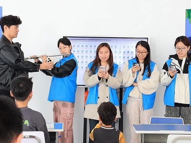 活动现场,志愿者们充分发挥专业所长,以音乐为媒搭建沟通桥梁。悠扬的吉他、婉转的长笛搭配温柔的歌声,缓缓敲开孩子们的心门。志愿者们以舒缓节奏、从容姿态演奏,逐步舒缓孩子们的拘谨情绪,引导他们感受音乐魅力。不少孩子在旋律中放松身心,随节奏轻晃身体,在音乐氛围中实现心灵的温情互动。